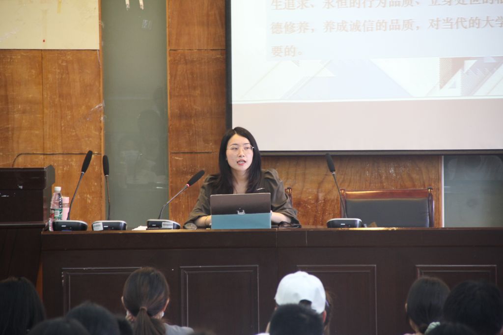 会议第二项,诚信宣誓,诚信教育也要有仪式感,与会同学们全体肃立,一齐宣誓:我郑重承诺:严格遵守国家规定,恪守诚信道德规范,认真践行贷款合约,按时偿还助学贷款,坚持诚信立身,诚信立学,诚信立言,诚信立行,早日成才,回报社会!