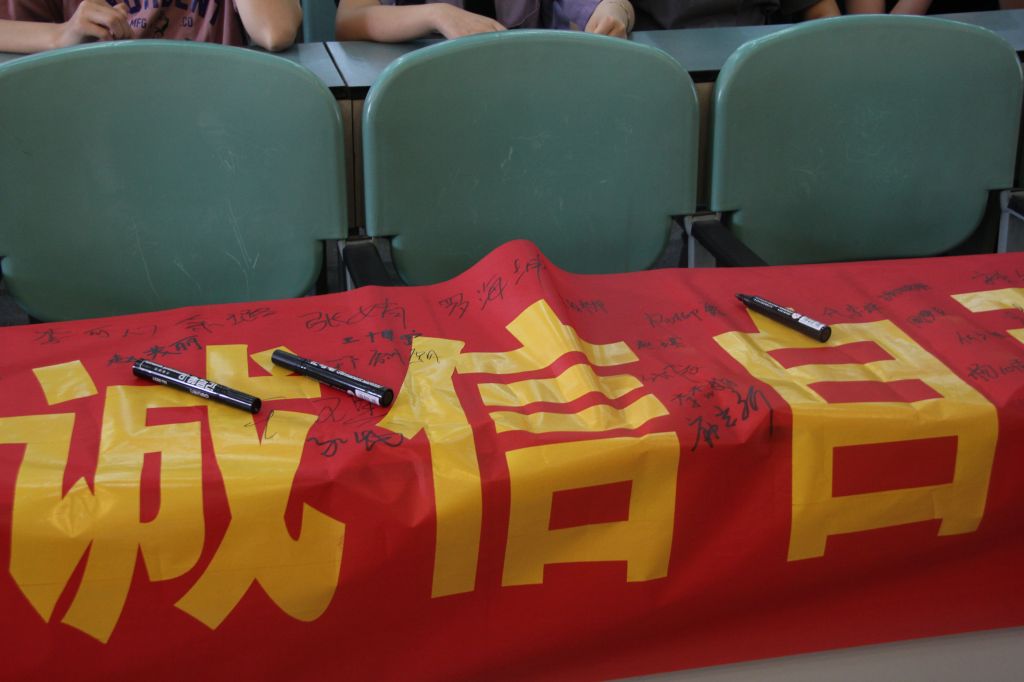 最后,“感恩资助研学梦,诚信自强伴我行”签名合影留念,全体同学在横幅上签名并共同合影留念。