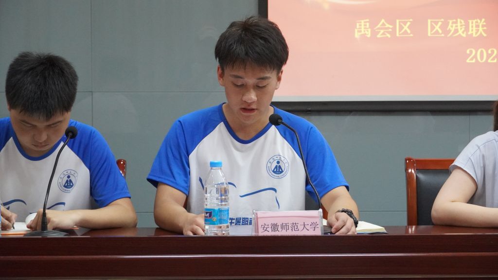 仪式伊始,支教团队负责人孙继超向与会人员讲述了团队的基本情况。团队共有16名成员,将依托本年度“三下乡”暑期社会实践活动开展课业辅导、素质拓展、心理疏导等形式的精准助残支教志愿服务;同时,团队将聚焦党的十八大以来蚌埠市禹会区取得的发展成就为现实教材,进行禹会区特色文旅产业调研,为家乡发展献言献策。