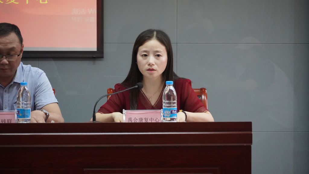 仪式第二项,王艳丽向团队成员介绍了禹会区康复中心的基本信息。王艳丽提到,蚌埠市禹会区残疾人康复中心作为安徽省残疾儿童康复定点机构。主要接待脑瘫、自闭症、智力障碍、听障四类儿童。目前接受康复治疗的残障儿童共387人。此次实践活动将帮助特殊孩子们接触更丰富教育形式,有利于融入社会。