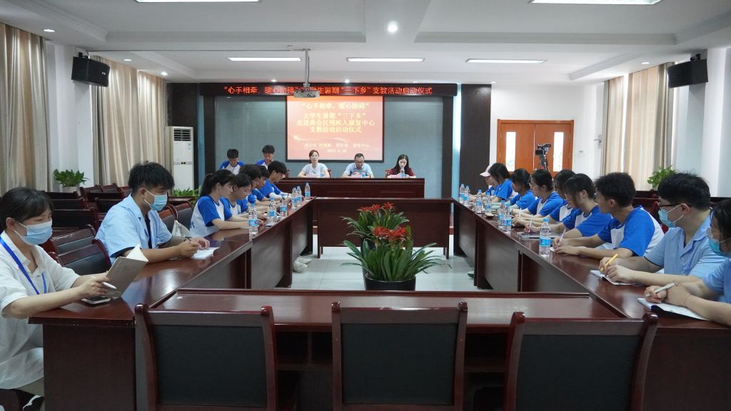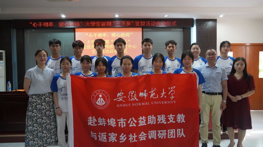 赴蚌埠市公益助残支教与返家乡社会调研团队走进禹会区残疾人康复中心开展启动仪式。区残联理事长徐群运、团区委书记李洁,康复中心主任王艳丽以及团队全体成员参加启动仪式。启动仪式由李洁主持。