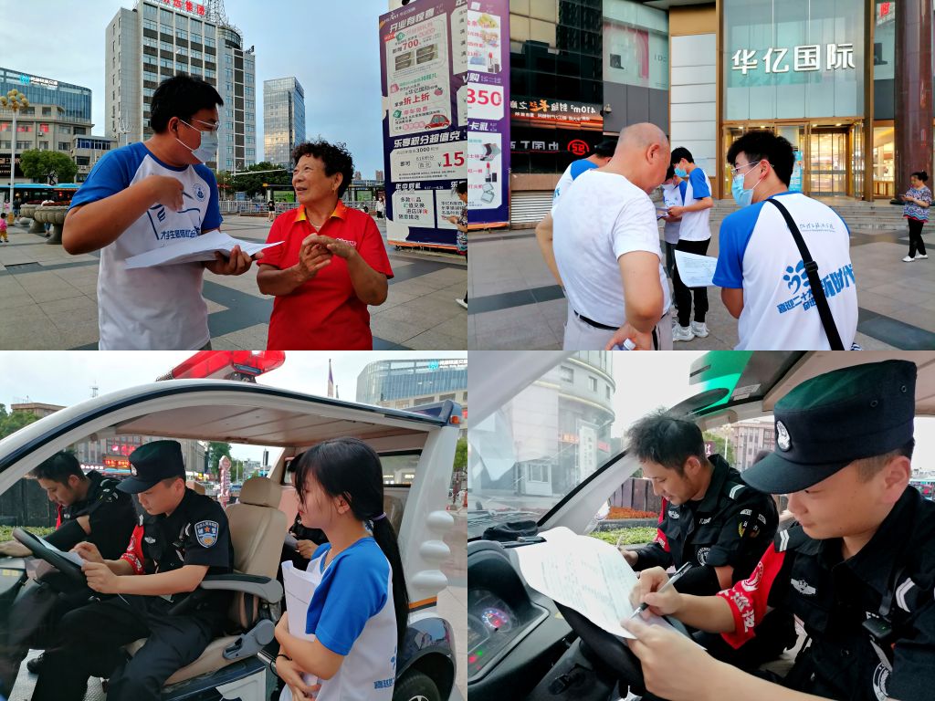 日斜西山,霞光万道。调研团队从校东门出发,乘坐轻轨1号线到达鸠兹广场站,步行至华亿广场后,该团队按原定计划向广场上的居民分发调查问卷。落日余晖之下,一群身着统一队服的青年学生在广场上穿梭,吸引了不少路人的目光。“您好,我们是国产精品