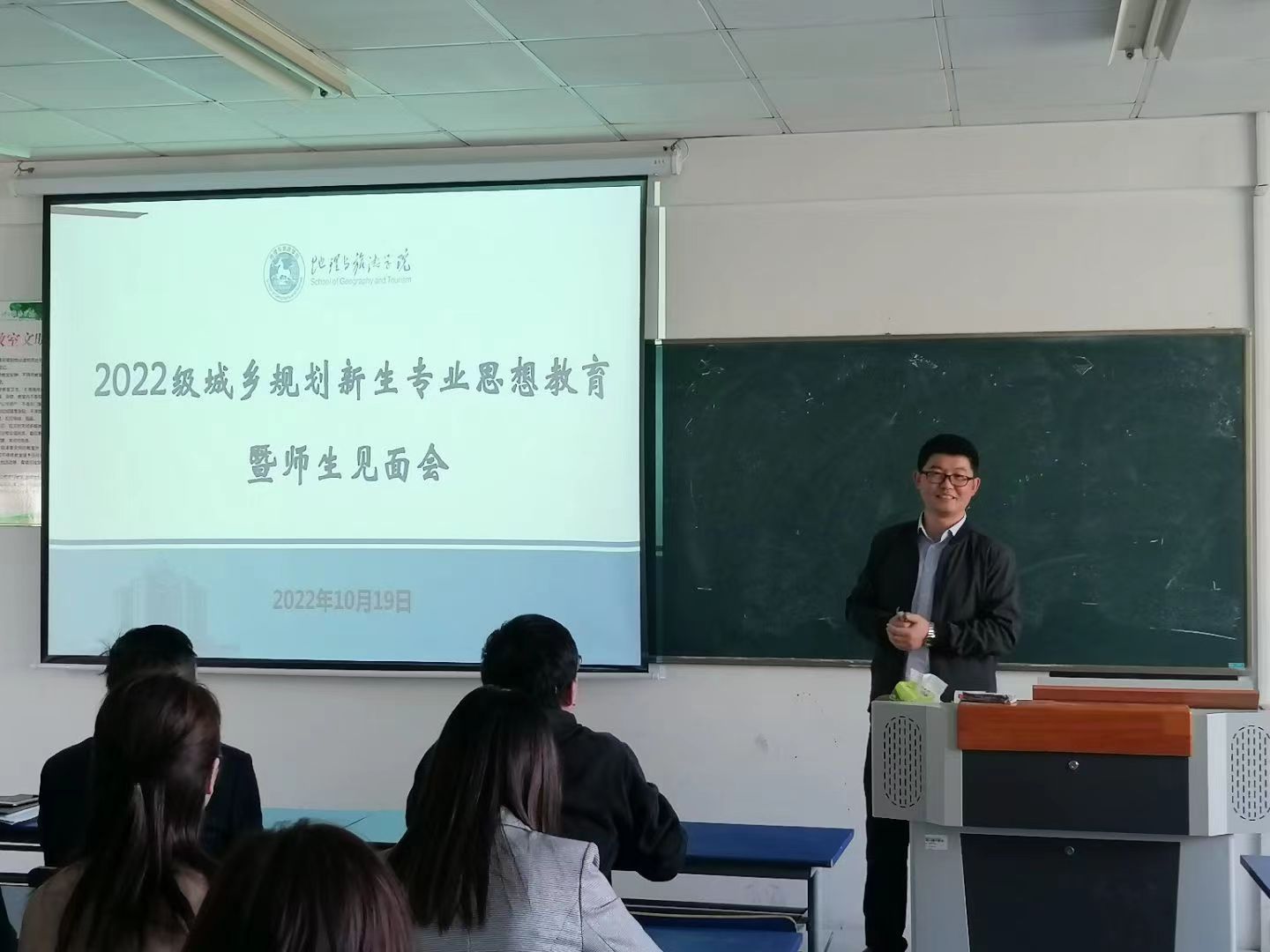 2022级城乡规划专业于实验楼201教室举办新生专业思想教育暨师生见面会,会议由城乡规划专业负责人韩会然主持,学院教学副院长杨兴柱、专业课教师及2022级城乡规划专业全体学生参加。