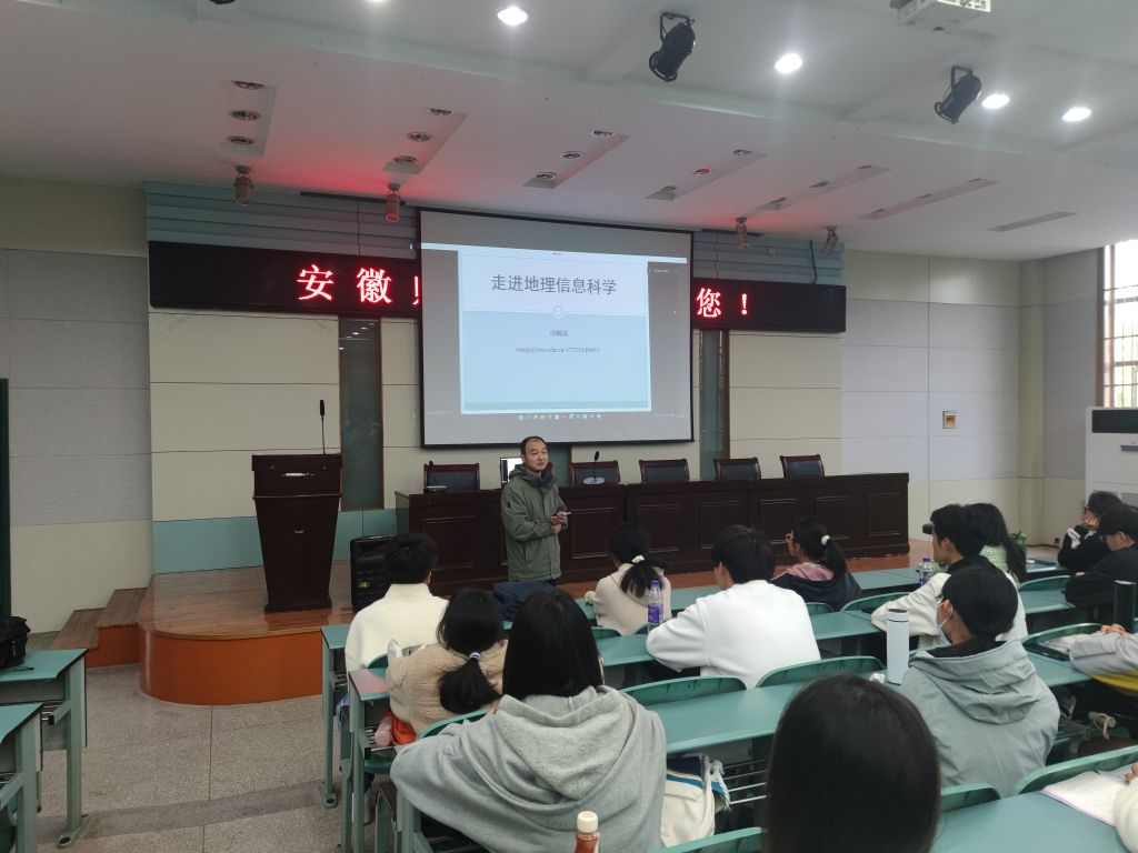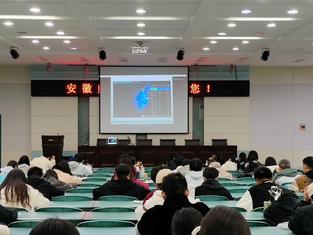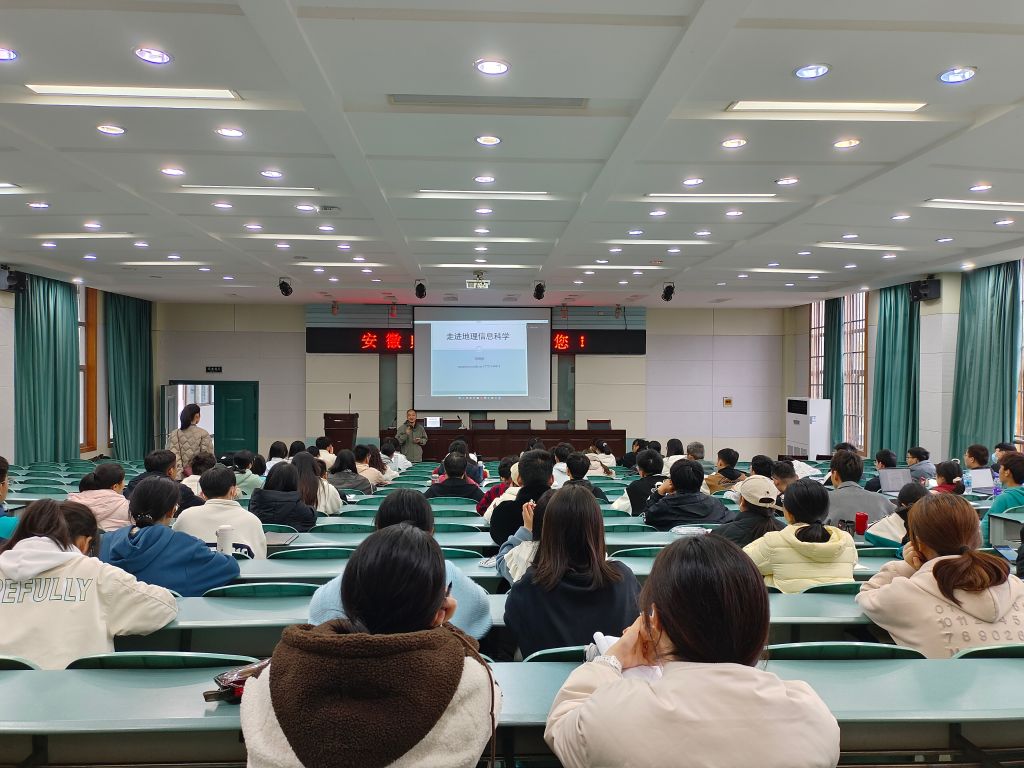 院长方凤满,辅导员陈祥云,2022级地理信息科学专业一班全体同学出席报告会。