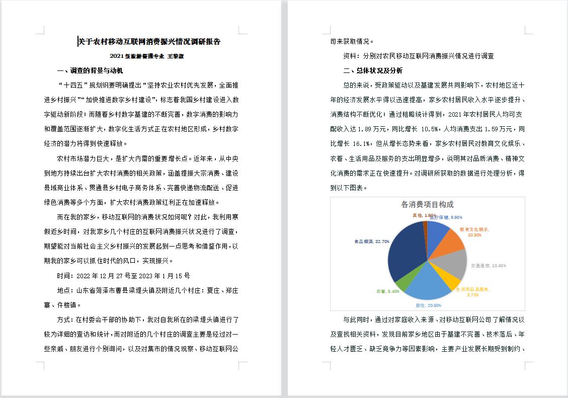 体悟观察社会,助力家乡发展。实践学子聚焦社会发展、乡村振兴等主题,通过文献阅读、调研访谈、田野调查等方式,在家乡实地走访农户、社区、企业、政府部门等收集资料,体悟家乡变化,结合专业所学,从环境治理、乡村旅游等角度提出发展建议,共形成社会调查和资政报告10余篇,用自己所学为家乡发展建言献策。