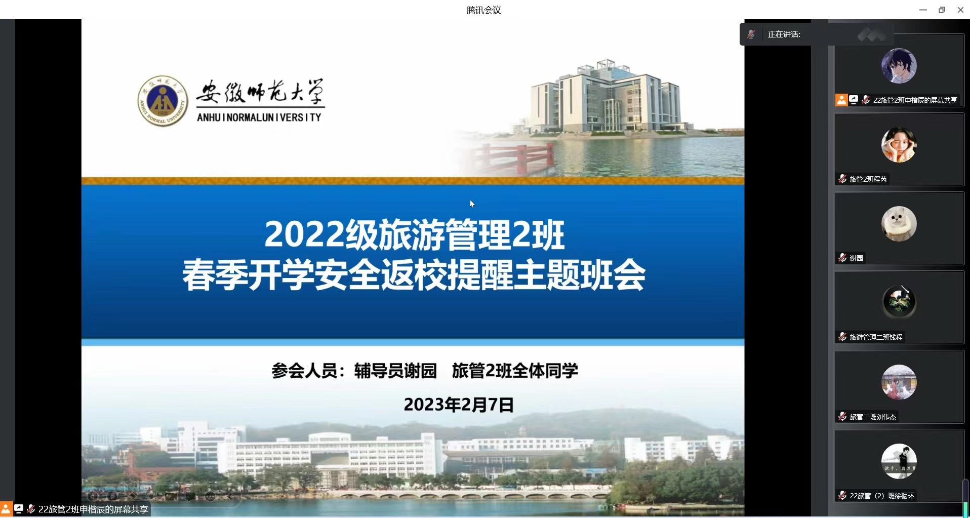 2022级旅游管理专业召开春季开学安全返校提醒线上主题班会