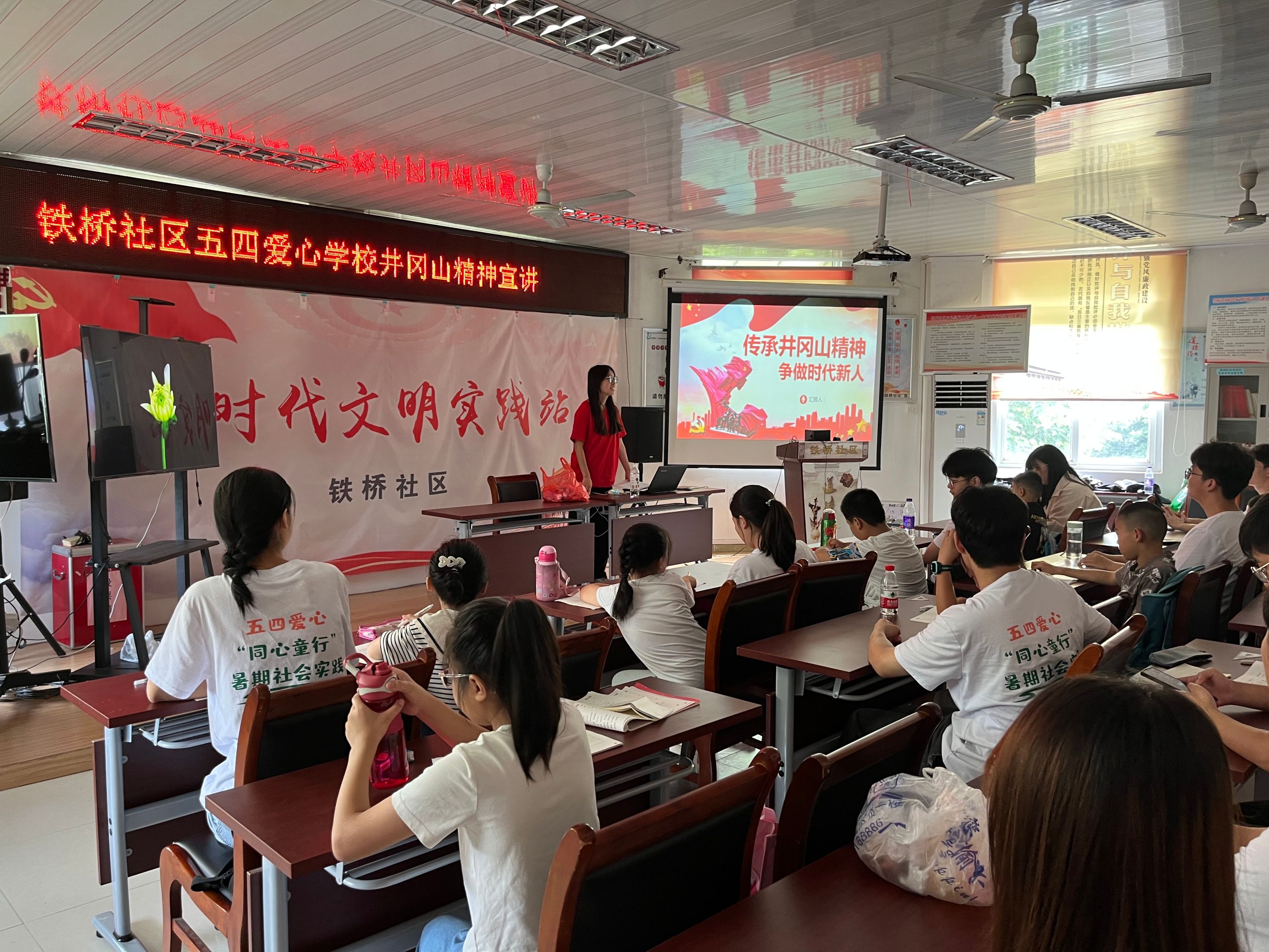 7月1号上午,在芜湖市弋江区铁桥社区,宣讲团成员开展了“传承井冈山精神,肩负新时代使命”主题教育活动。宣讲团成员张悦向社区青少年讲述了中国共产党成立102周年以来所取得的一个又一个的辉煌成就,进一步激发青少年爱党爱国爱社会主义的情感,引导他们立志听党话、跟党走。
