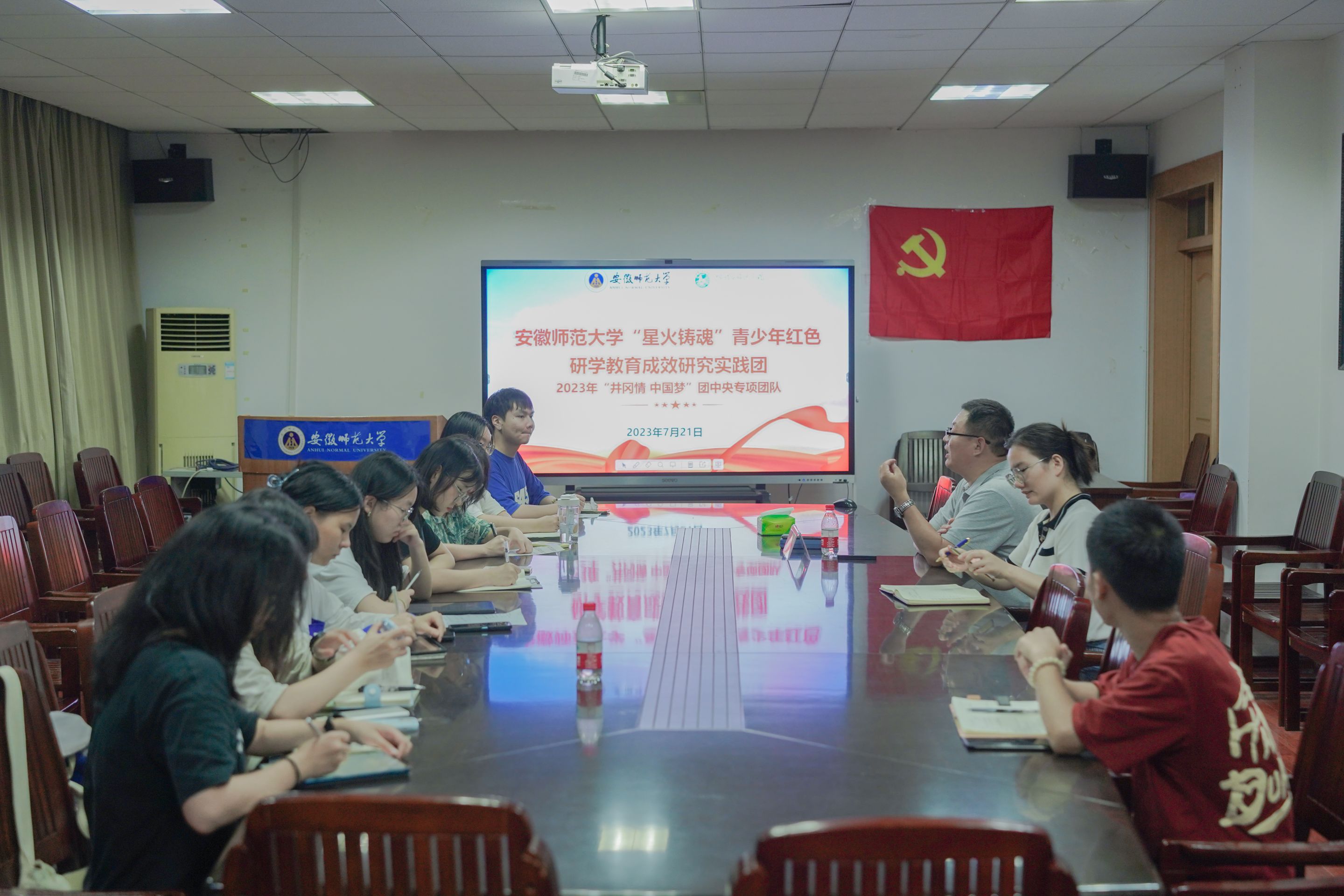 “星火铸魂”青少年红色研学教育成效研究实践团两支暑期社会实践讲授思政课,会议线上线下同步进行。