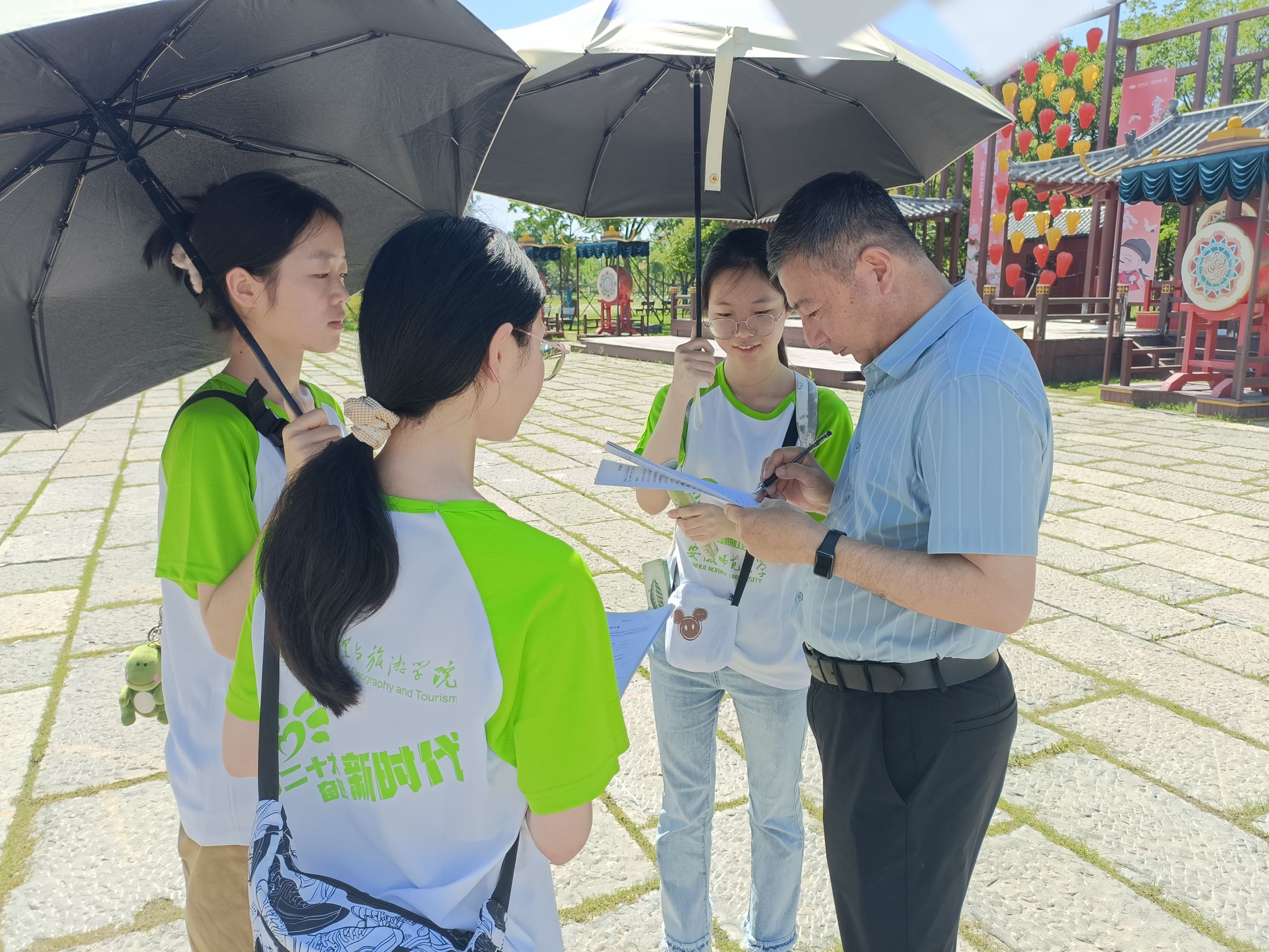前期调研团队指导老师与成员经过多次讨论,并结合景区实地参观情况,对问卷初稿进行修改,最终确定问卷内容。调研团队成员怀着对传统诗歌的热爱,携带着调查问卷和相机,深入西湖风景区,与游客和工作人员进行面对面交流,了解他们对于颍州西湖景区内宋韵文化的认知与感受。
