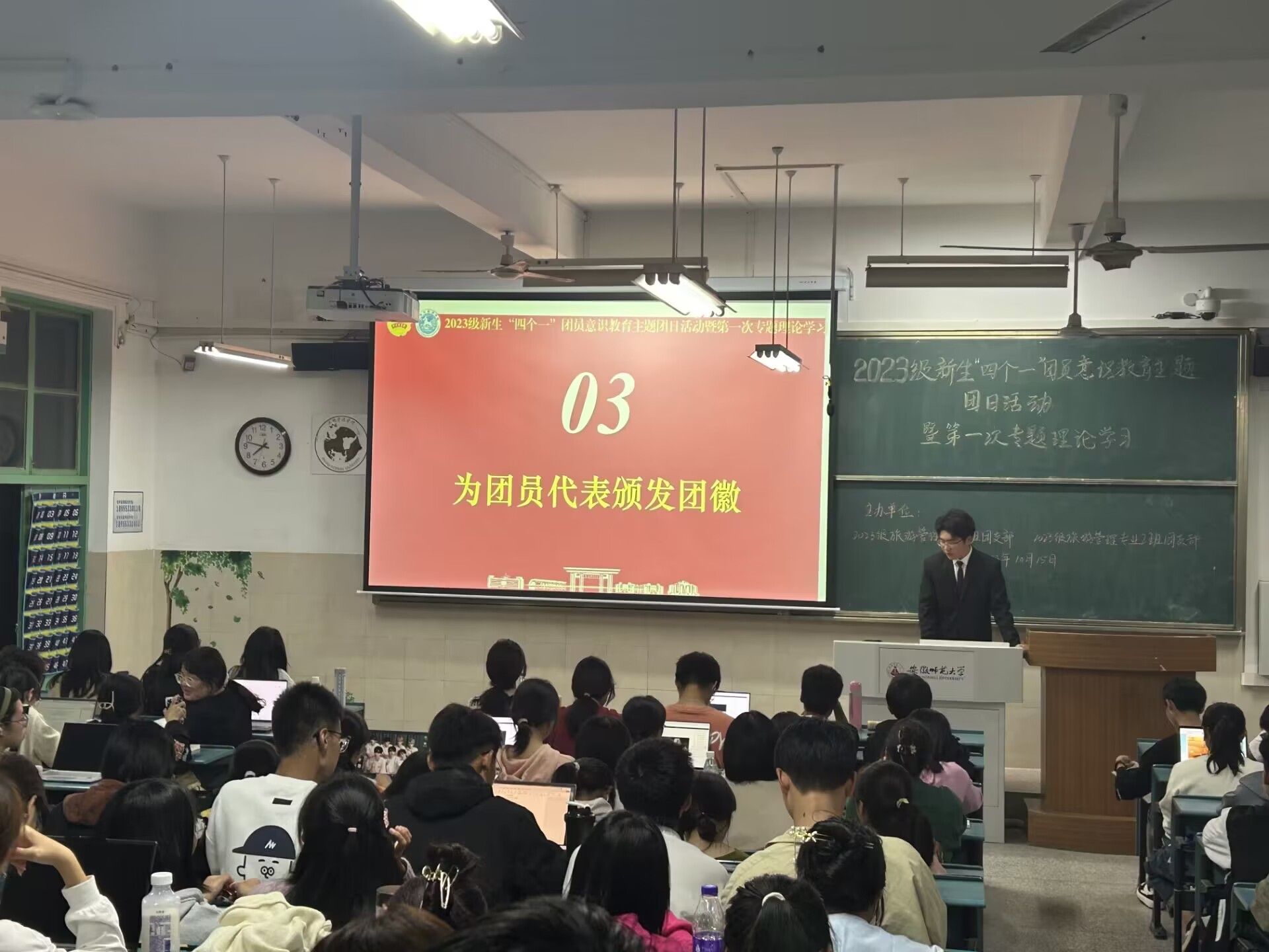 积极组织开展2023级新生“四个一”团员意识教育主题团日活动,为新生上好思想政治的第一课。