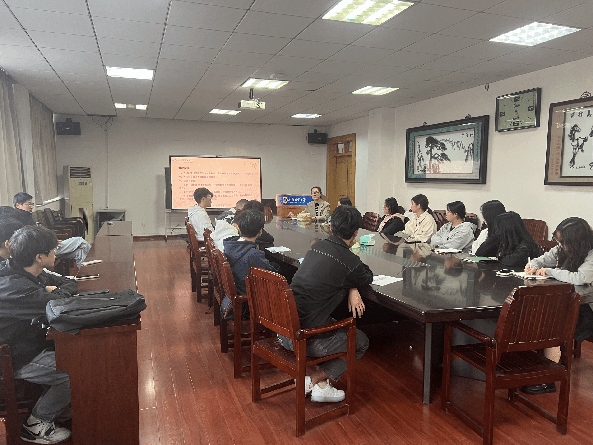 会议开始,陈祥云首先介绍了《星级寝室(优秀寝室)评定及寝室长考核方案》(讨论稿)。她指出,为了响应学校的“大学生护航行动”,保障学生的安全和健康成长,寝室作为学生生活的重要场所,其安全管理尤为重要,而寝室长作为此环节的关键人物,承担着重要的责任。她还列举了一些安全事故的案例,以此警醒大家对安全问题的重视。同时,她也表示希望通过星级寝室评定和优秀寝室长的评选,为寝室长们提供一个发展、成长的平台。