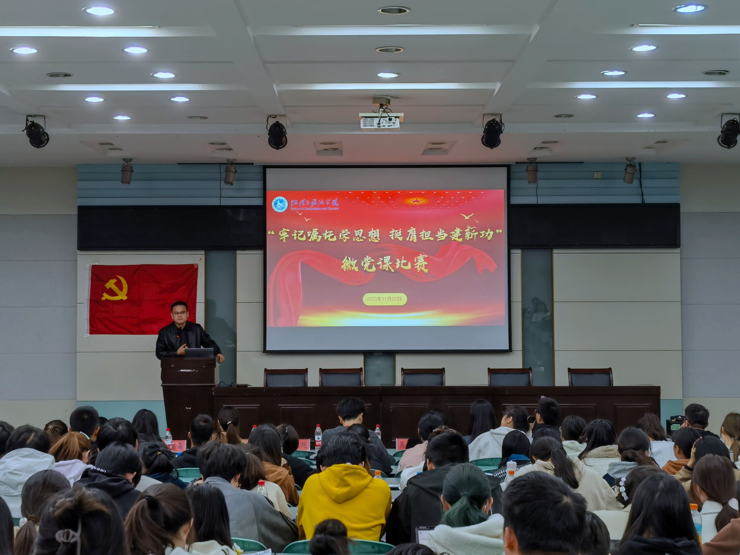 在学院实验楼101报告厅开展“牢记嘱托学思想,挺膺担当建新功”微党课比赛。学院党委副书记付勇、团委副书记吴文涵、本科生各党支部书记到场并担任评委,第15期学生党员培训班学员、第66期入党积极分子培训班学员参与观摩学习。本次活动由2022级城乡规划专业刘京川主持。