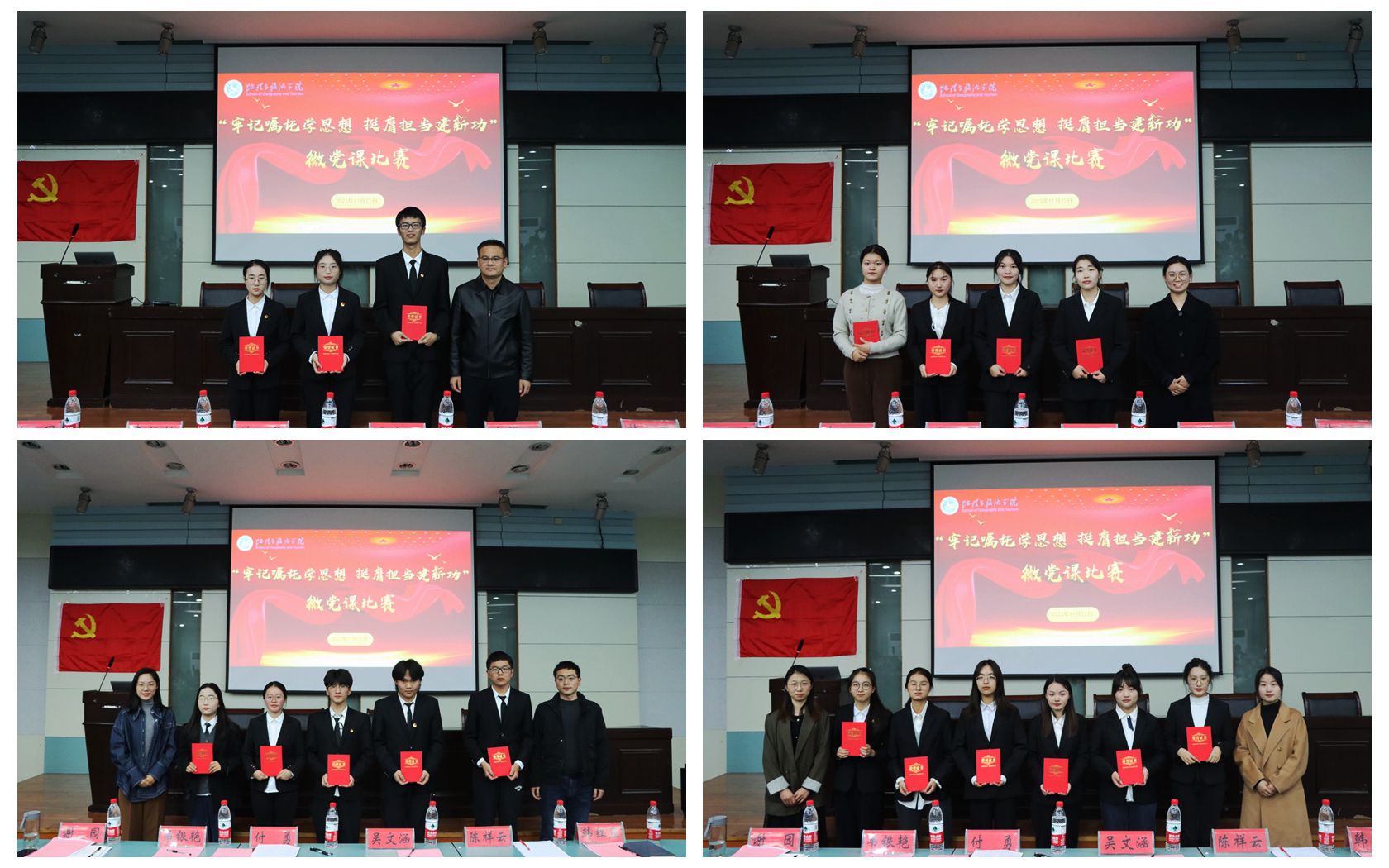 本次微党课比赛通过学生报名、学院选拔,共有18位学员入围决赛。参赛选手以不同角度阐述自己对习近平新时代中国特色社会主义思想的深刻理解。2022级地理科学(拔尖班)杨依沫慷慨激昂讲述千千万万行路者、赶路人砥砺奋进的故事,彰显新时代人民的坚韧与奋进,表达着平凡力量书写崛起华章的壮丽景象;2022级旅游管理专业徐瑾以时代为序,绘声绘色讲述中国共产党领导下农村的发展进程,生动讲述中国农民的故事。2022级地理科学(师范)专业宣然以“以中国式现代化推进民族复兴,以挺膺担当谱写青春华章”为题讲述了中国式现代化的概念、内涵及本质要求,号召全体同学坚定理想信念,充分领悟新时代青年大学生的使命与担当,以有理想、敢担当、能吃苦、肯奋斗的姿态为中国式现代化贡献自己的青春智慧与力量……
