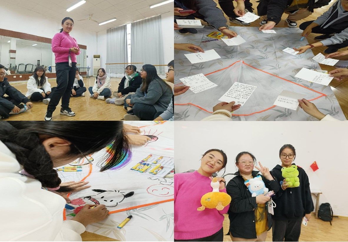 11月12日,院学生会组织开展主题为“共享阳光心理,护航健康成长”主题团辅活动。活动通过形式多样的小游戏充分调动同学们参与的积极性,使大家逐渐敞开心扉,沉浸其中。"校园慢递"活动中,同学们一笔一划勾画内心,书写大学的愿景。"DIY手绘风筝""活动中,同学们在风筝上画下喜欢的图案,“猪猪侠、樱桃小丸子、章鱼哥”等童年时期的玩伴在风筝上浮现,温暖着在场的每一位同学。本次活动的开展,同学们通过创作表达内心,促进了相互的沟通交流,有助于缓解日常学习压力,提升心理调适能力。