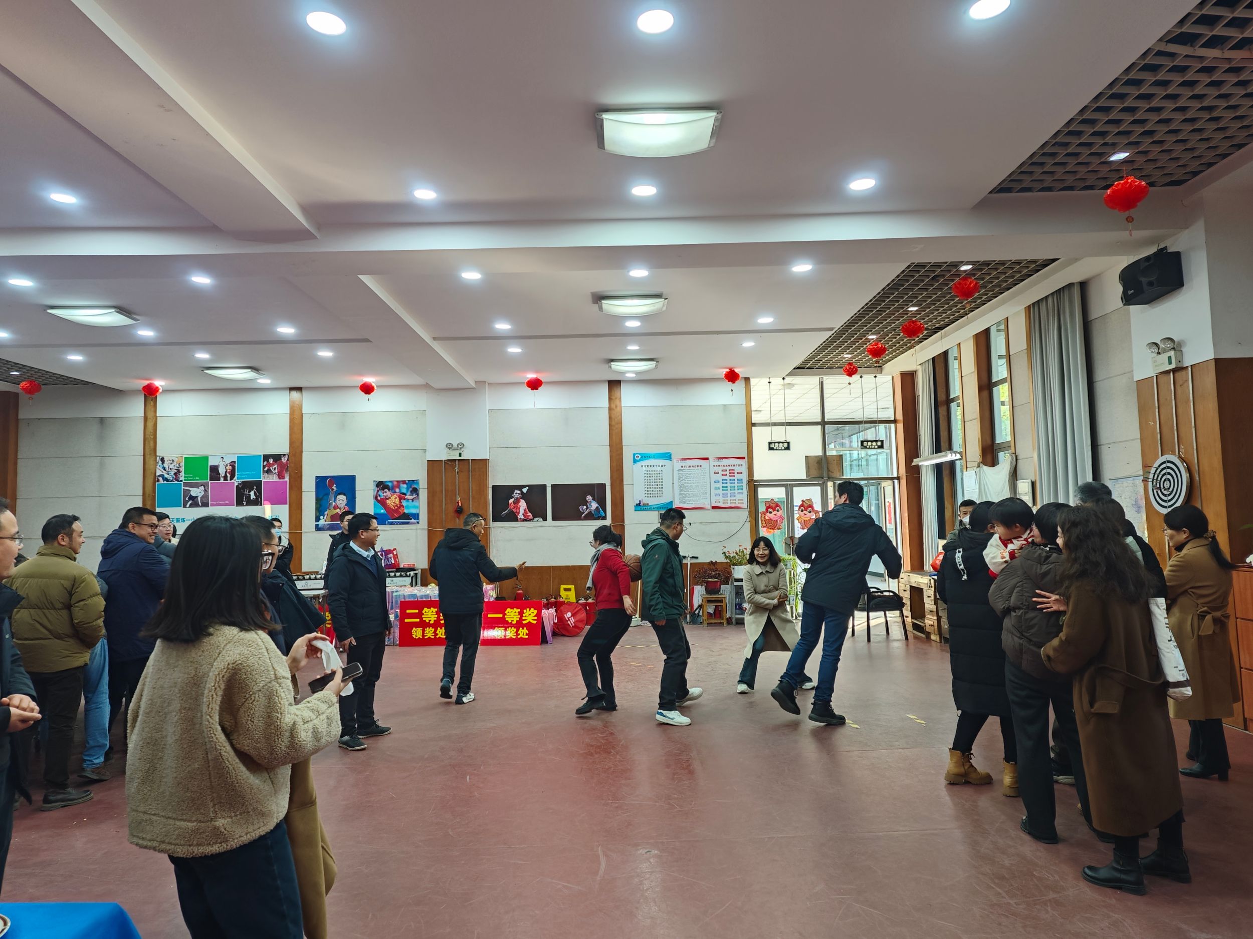 本次新年游艺会设置了丰富多彩的趣味活动项目,包括心心相印、夹乒乓球、飞镖、足球射门等。这些活动不仅考验了参与者的技巧和反应能力,还增进了彼此之间的默契和友谊。为了增加新年的喜悦气氛,活动还设置了抽奖环节。教职工们都期待着自己能够成为幸运儿,赢取丰厚的奖品。最后的抽奖环节将活动推向了高潮,中奖者们喜笑颜开,现场气氛热烈非凡。