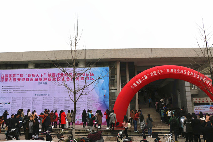 据悉,“职旅天下”系列活动的前身是由我校国旅学院于2013年底发起组织的主要面向院内毕业生举办的专场招聘会,经过四年的发展,该项品牌活动突破了起初学院层面单一的招聘会模式,提升为省级行业、学界和业界合作层面,体现“教学管一体化”思维,将“学业-专业-就业-行业”融为一体的复合式“招聘会+”模式。从初创时20余家企业、校内100余人参与的规模,发展到如今参会企业突破100家,提供就业岗位2000余个,覆盖我省16所旅游高校的千余位学子参会的规模。2015年3月,该活动首次正式创设旅游业发展高峰论坛;2016年3月,该项活动进一步优化结构、拓展功能、提升层次,活动的主办方首次升级为安徽省旅游局和国产精品