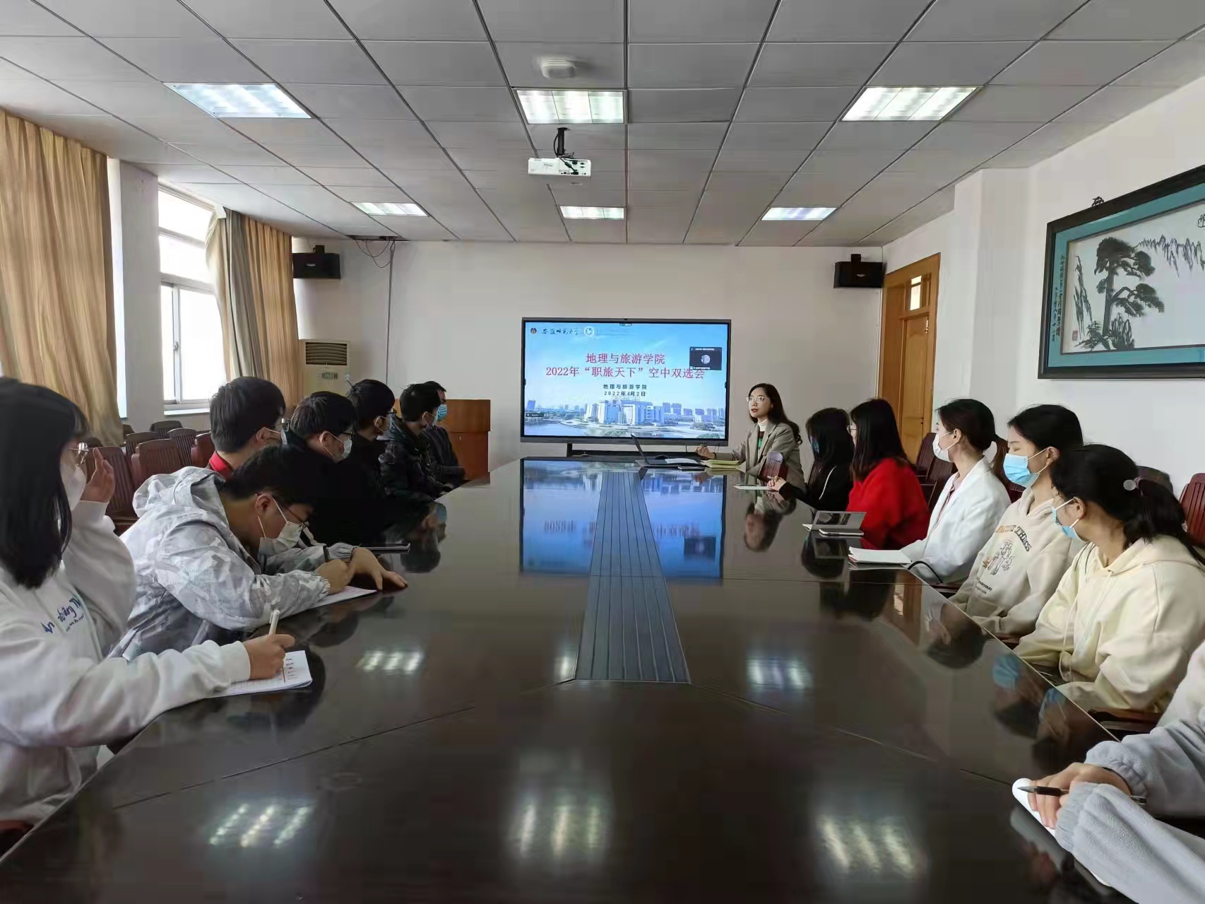 在学院行政楼三楼会议室及腾讯会议平台举办2022年“职旅天下”空中双选会。本次双选会采取企业线上宣讲,学生线上+线下参会模式,会议由毕业班辅导员陈祥云、张慧主持。两场双选会共计14家用人单位参会,提供就业岗位200余个,学院300余名毕业生参加求职应聘。