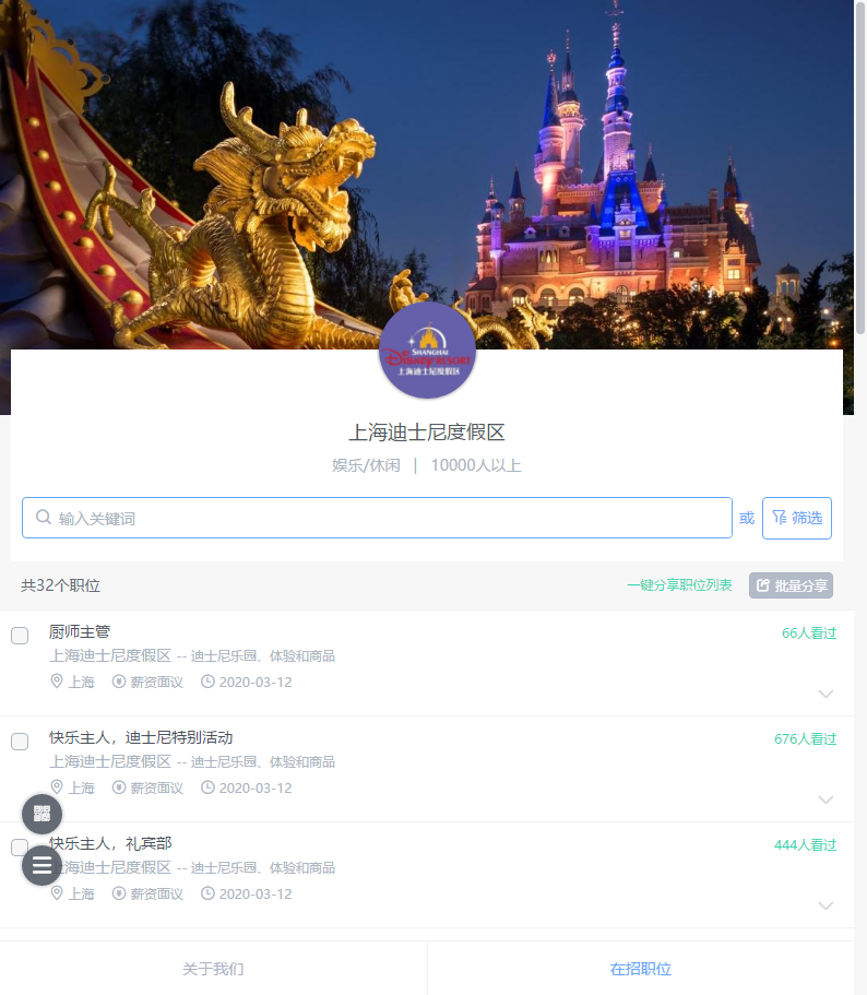 上海迪士尼度假区招聘信息
