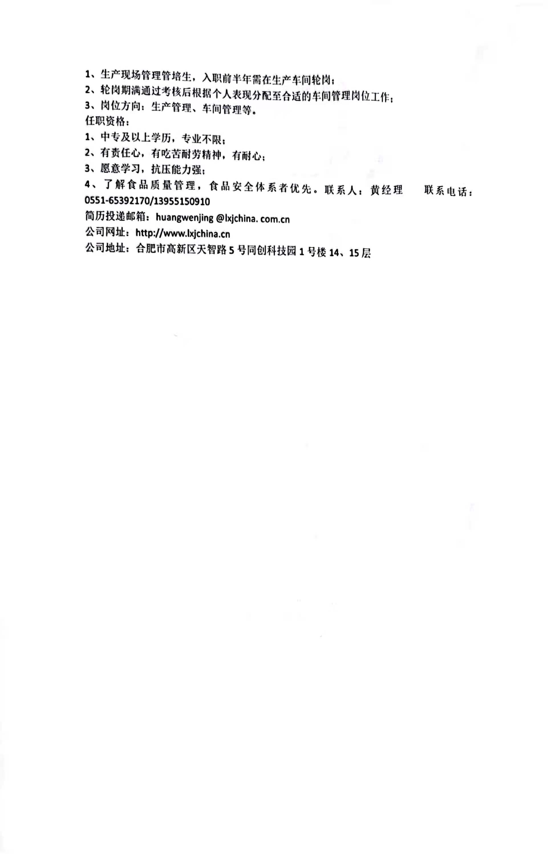 安徽老乡鸡餐饮股份有限公司招聘简章