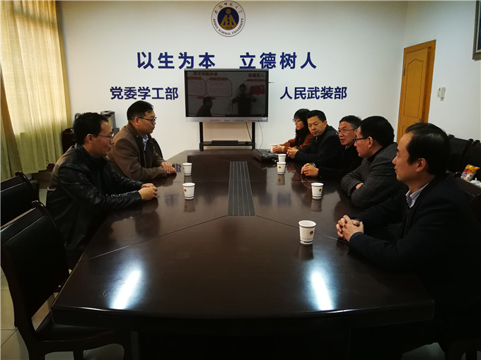 招聘会开始前,聂全高、贾冠忠、乔静、曹卫东、赵冬梅在招生就业处会议室亲切接待了段中华一行,并就就业相关工作进行了深入交流。讨论分析了毕业生就业情况及就业方式,并对这种政校企合作的招聘模式给予充分肯定。